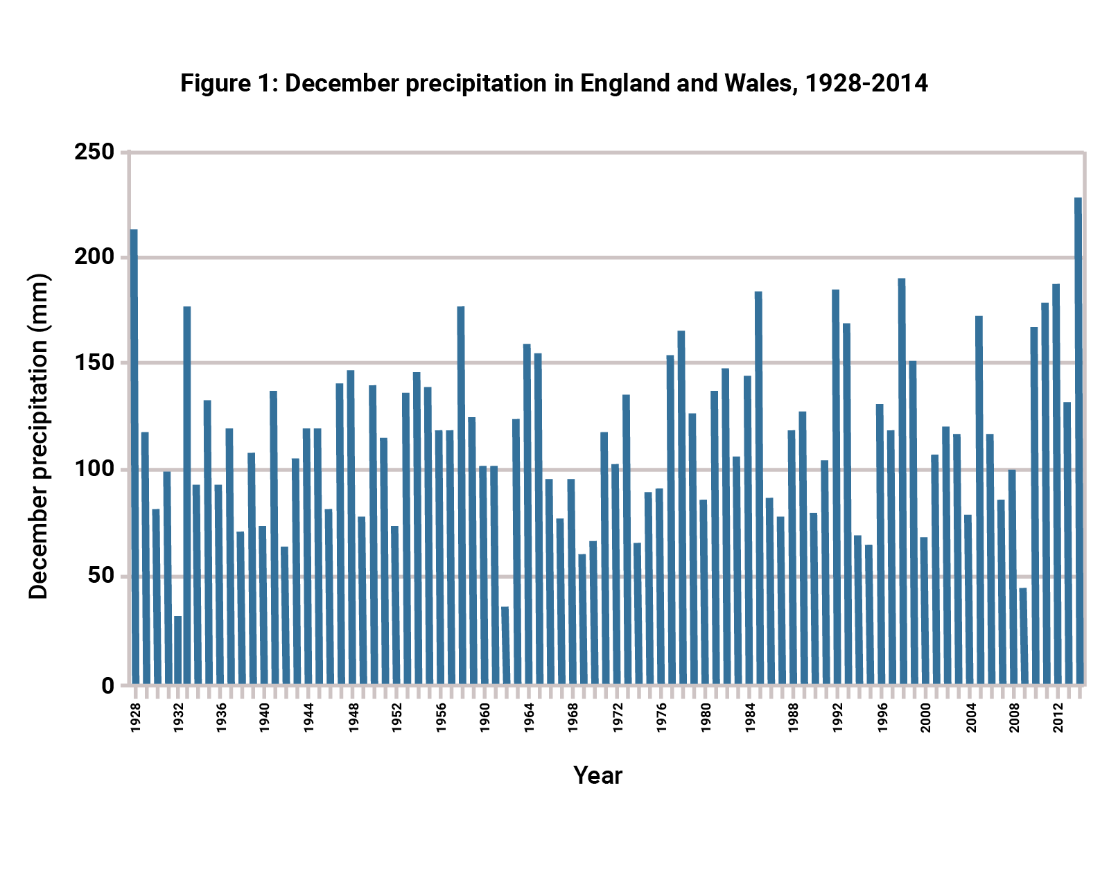 Use the graph to analyse long-term changes in December precipitation in England and Wales.
